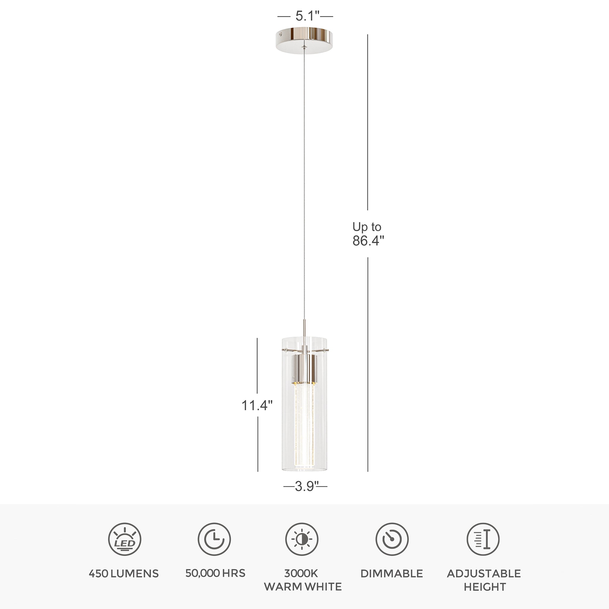 A refined LED pendant featuring a polished chrome structure with a clear outer glass and an inner layer of premium bubble glass. The layered design softens the LED light, creating a warm, luminous effect suitable for a wide range of interior settings.